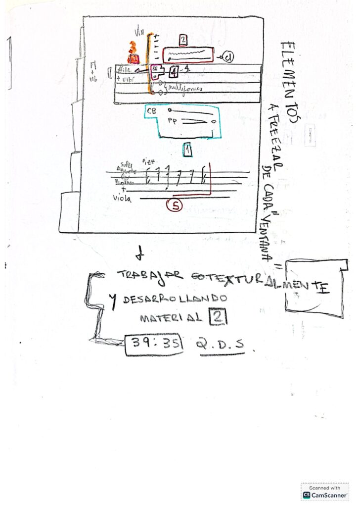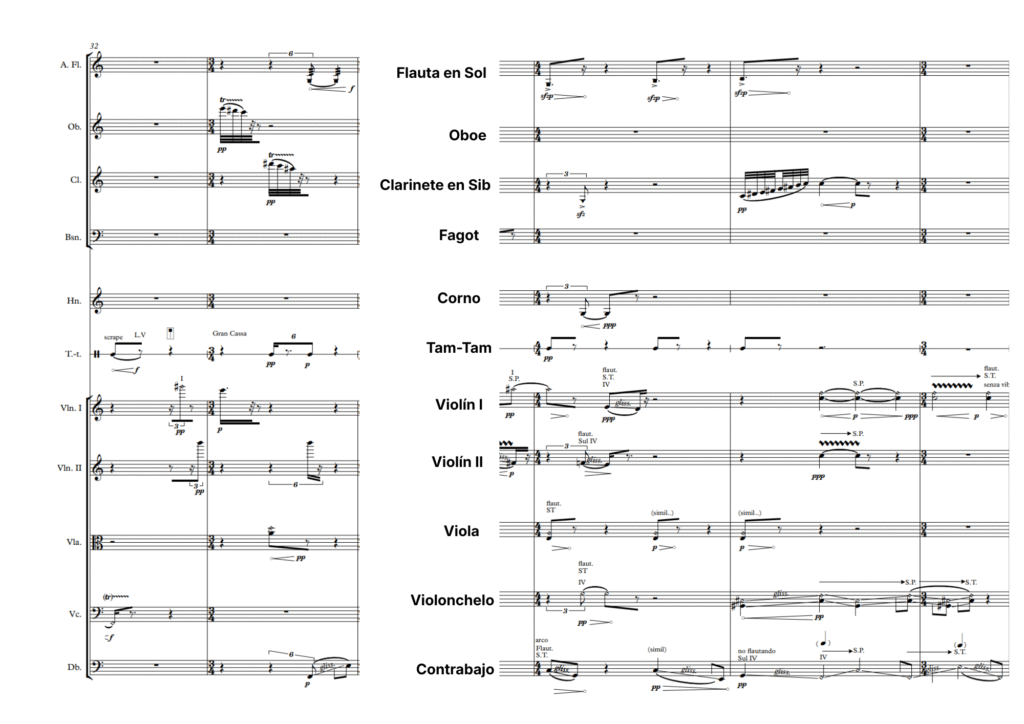 Fue ahí donde se presentó la figura que se volvió central para esta pieza: la Forma de ventana (o forme-à-fenêtre). Sciarrino presenta esta figura dentro de lo que llama una “nueva concepción del tiempo”, donde la música moderna ya no se despliega de manera continua, sino que incorpora la discontinuidad espacio–temporal como parte de nuestra sensibilidad contemporánea. Vivimos en un mundo lleno de cortes, interrupciones, simultaneidades; saltamos entre pantallas, mensajes, imágenes y “la forma de ventana” encarna justamente esto: una discontinuidad que no es solo temporal, sino también espacial.